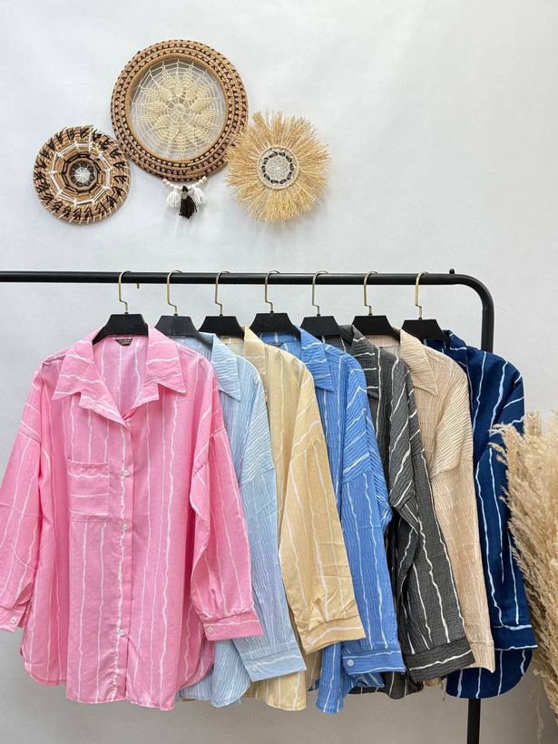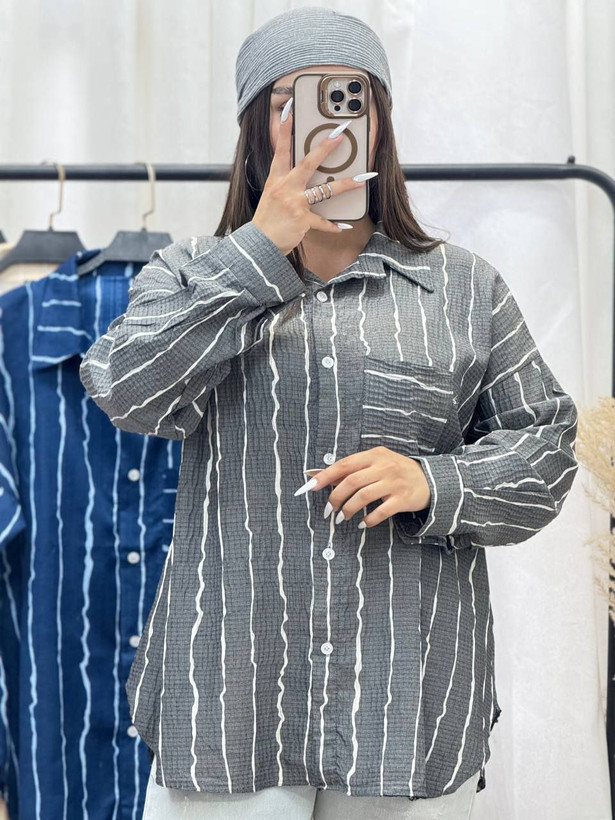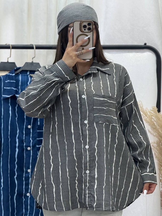 شومیز زنانه مجلسی جلو بسته پری راه راه فری سایز تا ۴۸